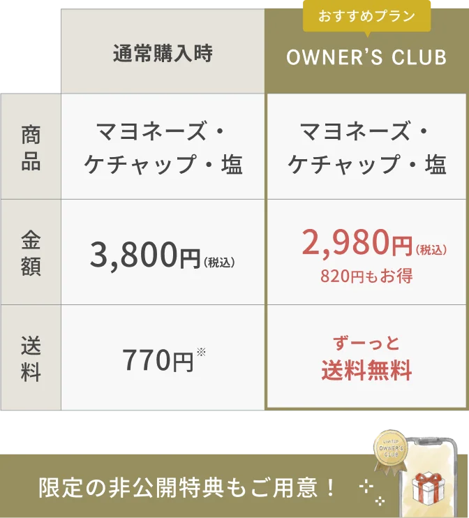 ※1 ご注文金額が税込10,000円未満の場合、税込770円(沖縄を除く)、マヨネーズのみ8月1,100円(税込)