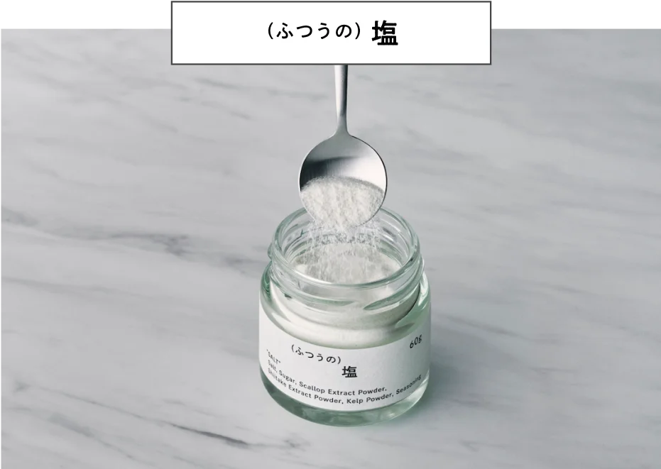 【原材料】食塩(オーストラリア製造、国内製造)、砂糖、ホタテエキスパウダー、シイタケエキスパウダー、昆布パウダー/ 調味料(アミノ酸)