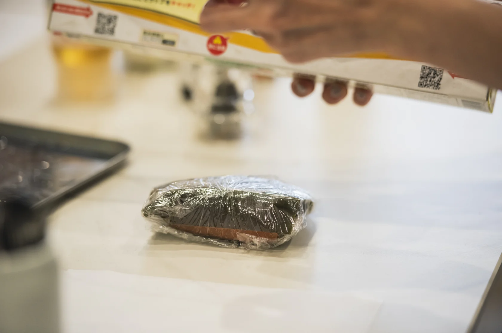 最後は、昆布とサーモンが密着するようにラップで包み、冷蔵庫に入れておくだけです。思っていたよりシンプルな工程に、参加者からは「こんなに簡単なんだ」という声が上がっていました。