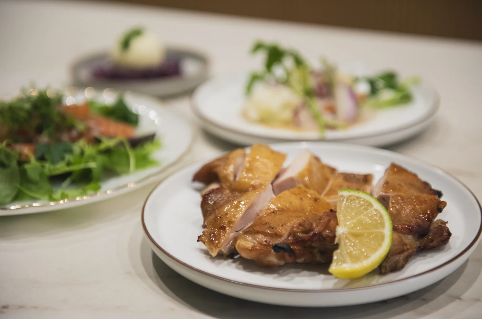 「(ふつうの)ショップ」の調味料を使いながら、家庭で再現できる"ひと手間"とコツをたっぷりお伝えするこのレッスン。クリスマスにぴったりなローストチキンをはじめ、華やかな4品を参加者たちが協力しながら作りました。