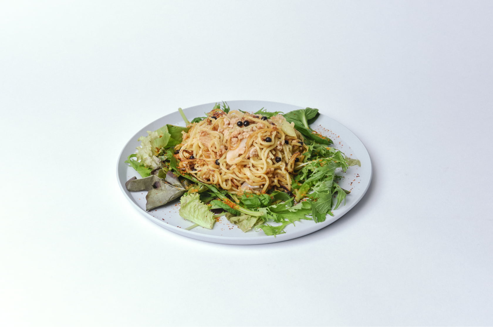 この料理では「(ふつうの)マヨネーズ」が主役級の活躍。鶏そぼろと同じく油の代わりに「(ふつうの)マヨネーズ」を使って、具材や麺を炒めます。麺を入れたときに追加で「(ふつうの)マヨネーズ」入れると、麺がほぐれやすくなるほか、全体がまろやかな味わいに。