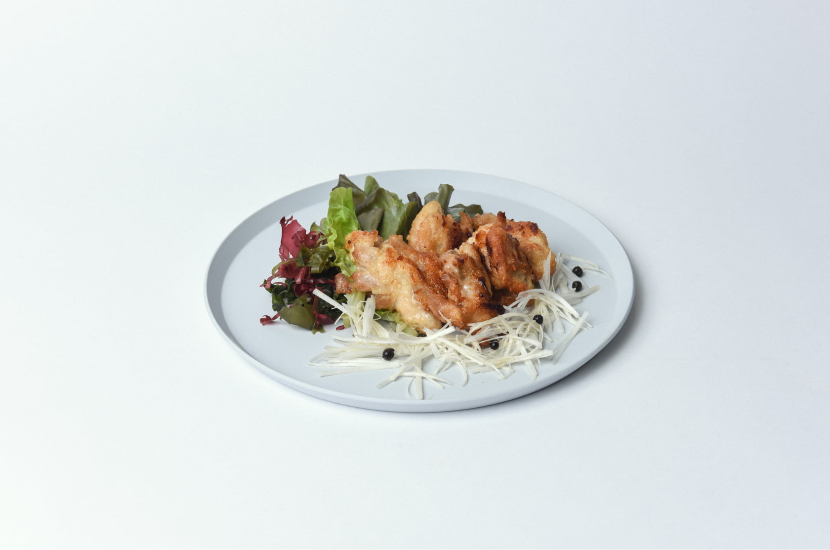 「(ふつうの)マヨネーズ」は、一般的なマヨネーズと比べると、酸味や塩味が控えめ。そのため、下味に使っても主張が強くなく、素材の味によく馴染みます。また、「(ふつうの)マヨネーズ」を使うことで、一般的な唐揚げよりも少し白くなり、見た目にも新鮮さが出ます。