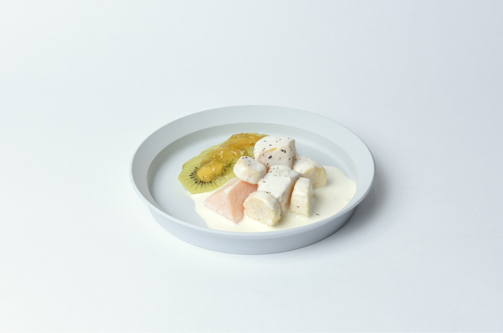 酸味と塩分が控えめな「(ふつうの)マヨネーズ」だからこそ実現できるアイデア。生クリームに、「(ふつうの)マヨネーズ」の程よい酸味を加えることで、フルーツの甘みと酸味を引き立てる味わいに。