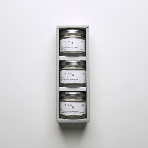 ■塩: 食塩(オーストラリア製造、国内製造)、砂糖、ホタテエキスパウダー、シイタケエキスパウダー、昆布パウダー/調味料(アミノ酸)
