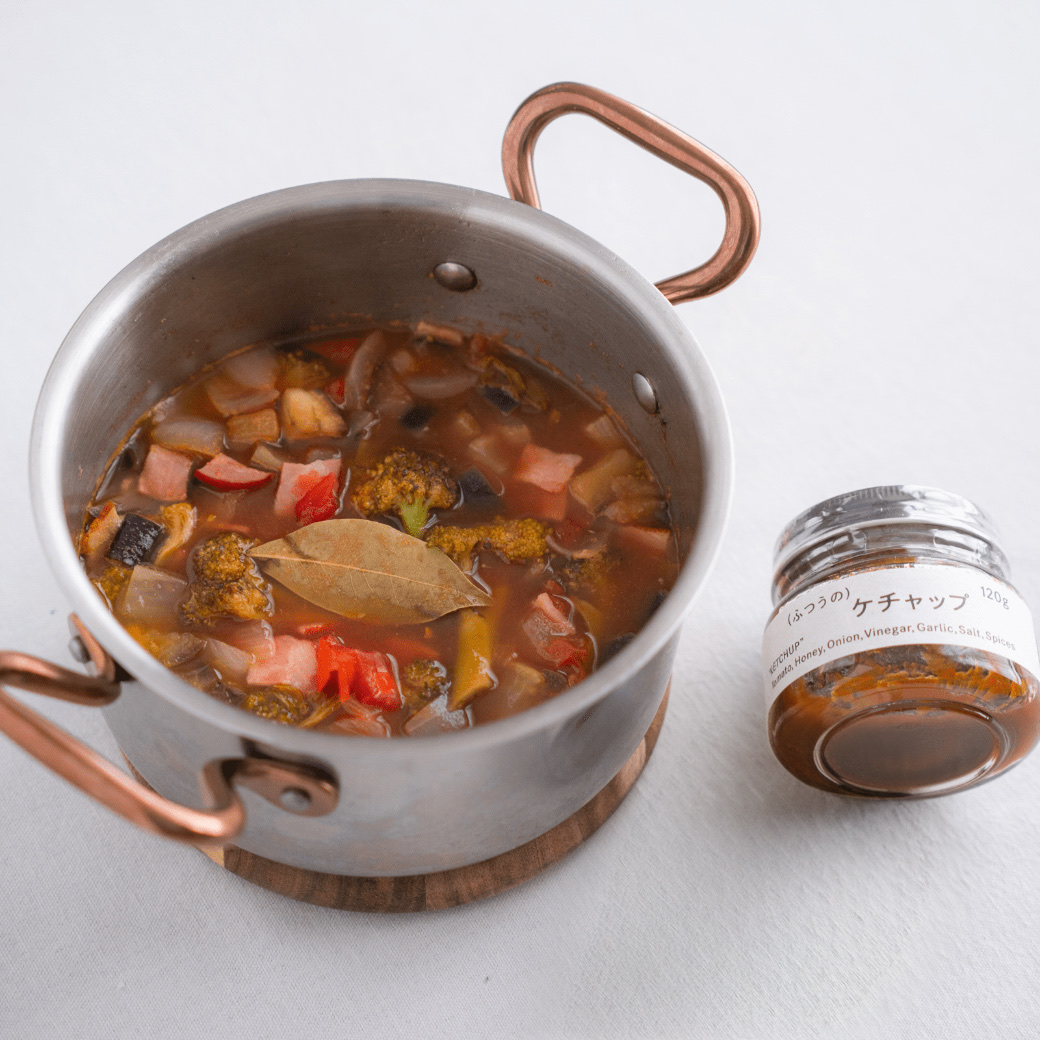 味を変えるのではなく、味を伸ばす調味料という(ふつうの)マヨネーズの考え方をケチャップに。強すぎても、弱すぎてもだめという繊細で絶妙なバランスを、4時間以上トマトを煮詰めることで瓶に閉じ込めました。ケチャップでありながら、トマトソースのように料理にも使える万能品です。
