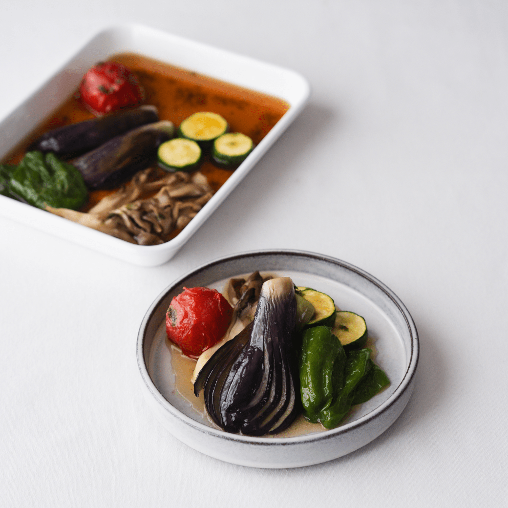 - ①の野菜を素揚げし、②に入れていく。粗熱が取れたら冷蔵庫で味が染みるまで冷やして出来上がり。(1~2時間)