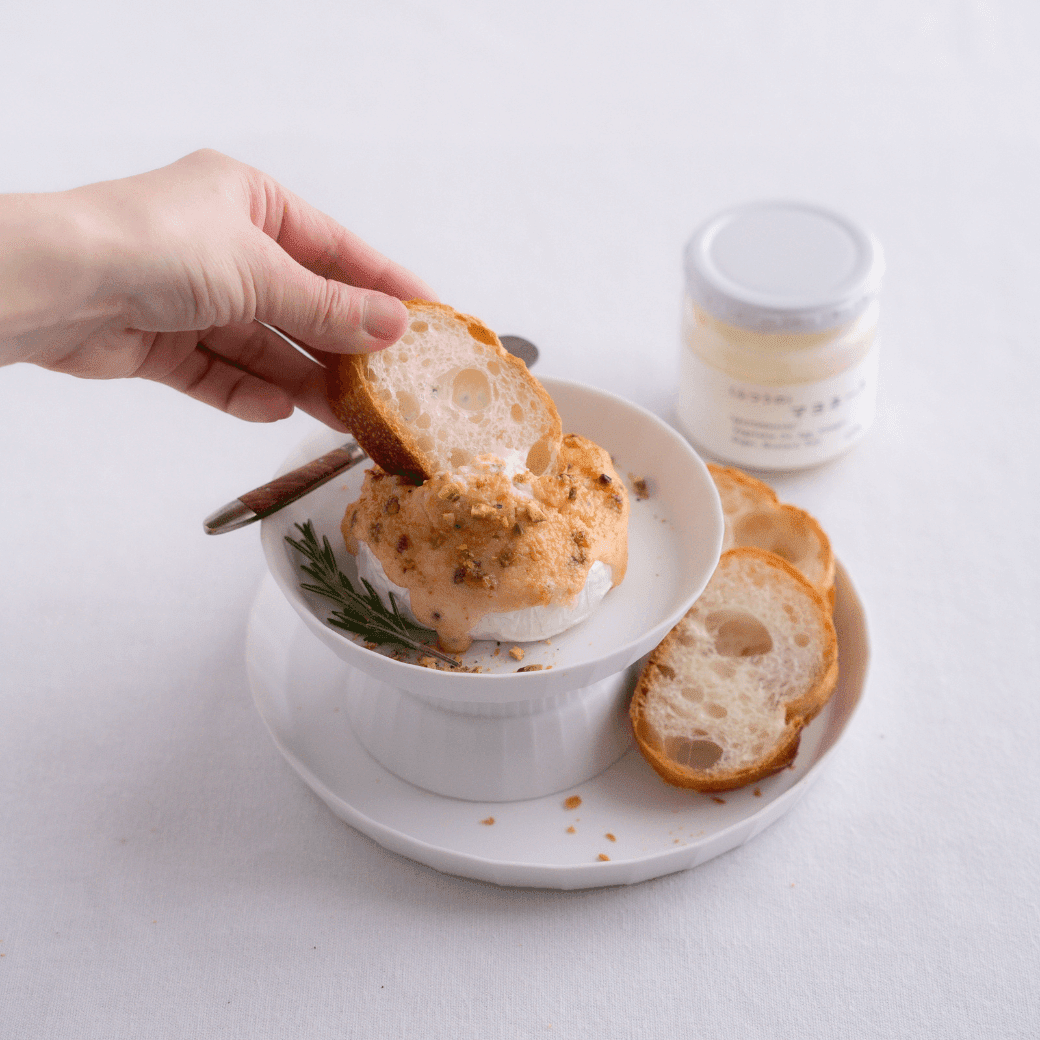 - フランスパンをお好みの大きさにカットし、②のチーズをつけていただく。