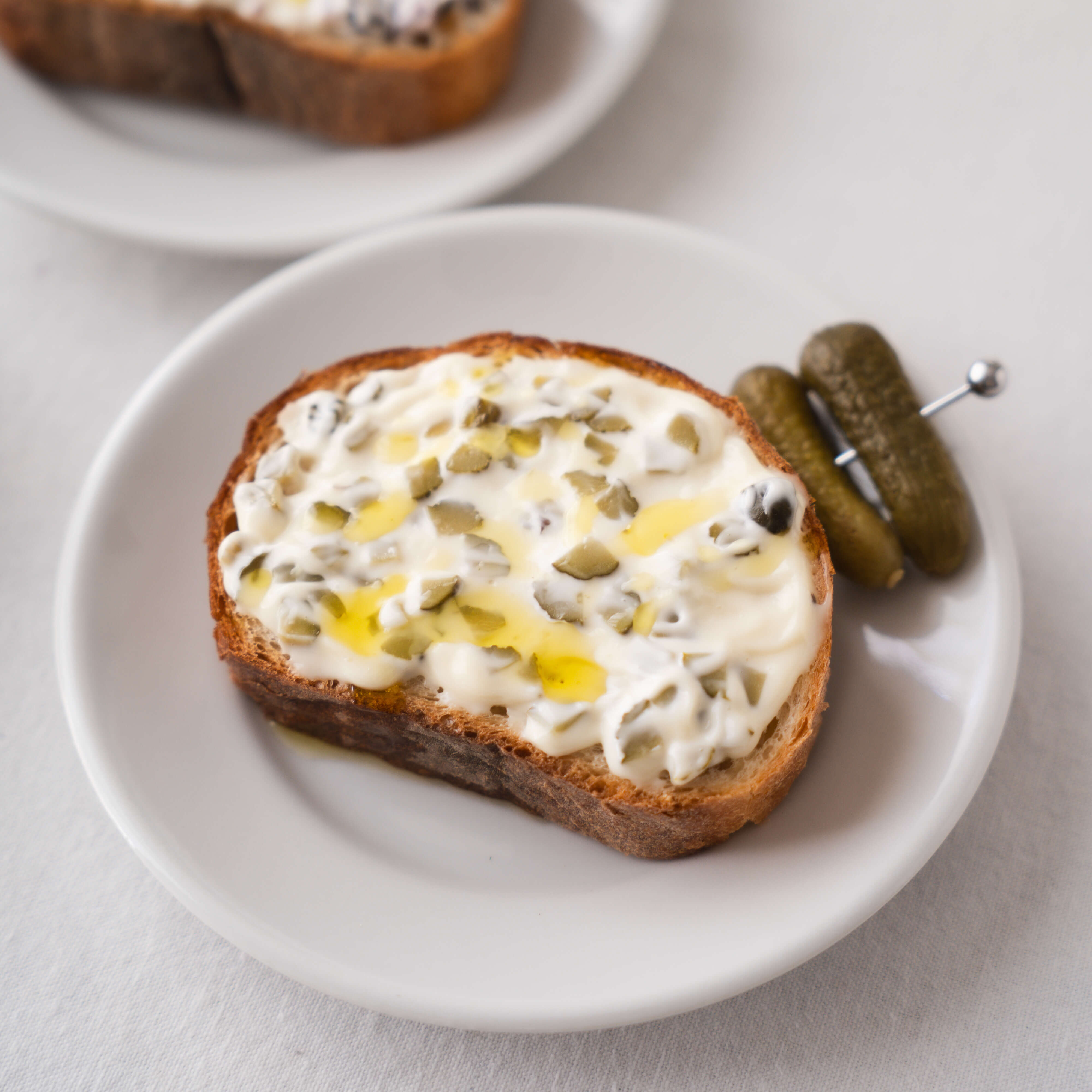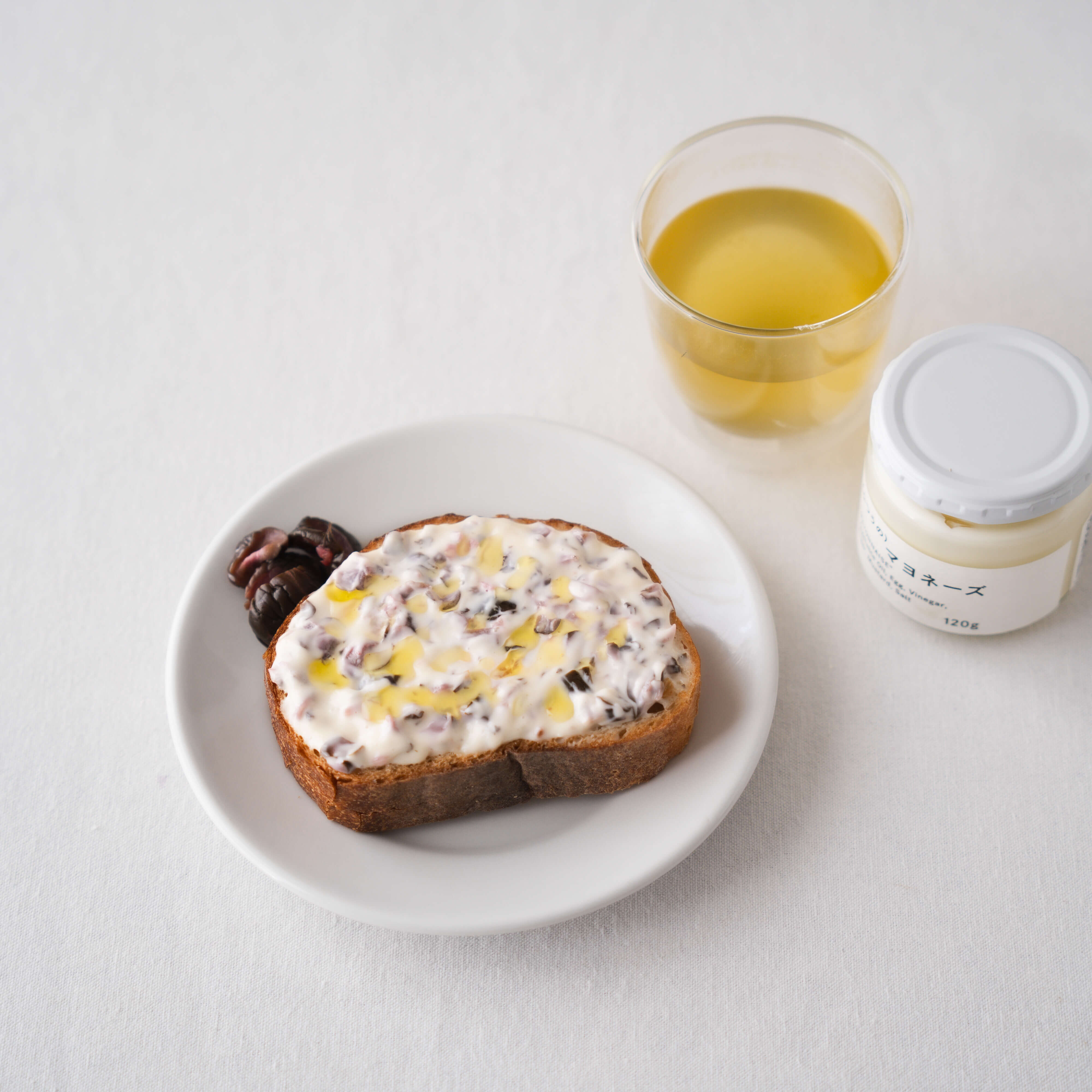 - ※(ふつうの)マヨネーズに、しば漬けやピクルスの風味と塩味がよく合い、シャキッとした歯ごたえも楽しいソースに仕上がります。パンに塗ってから焼いたり、目玉焼きをのせていただいても、美味しくお召し上がりいただけます。