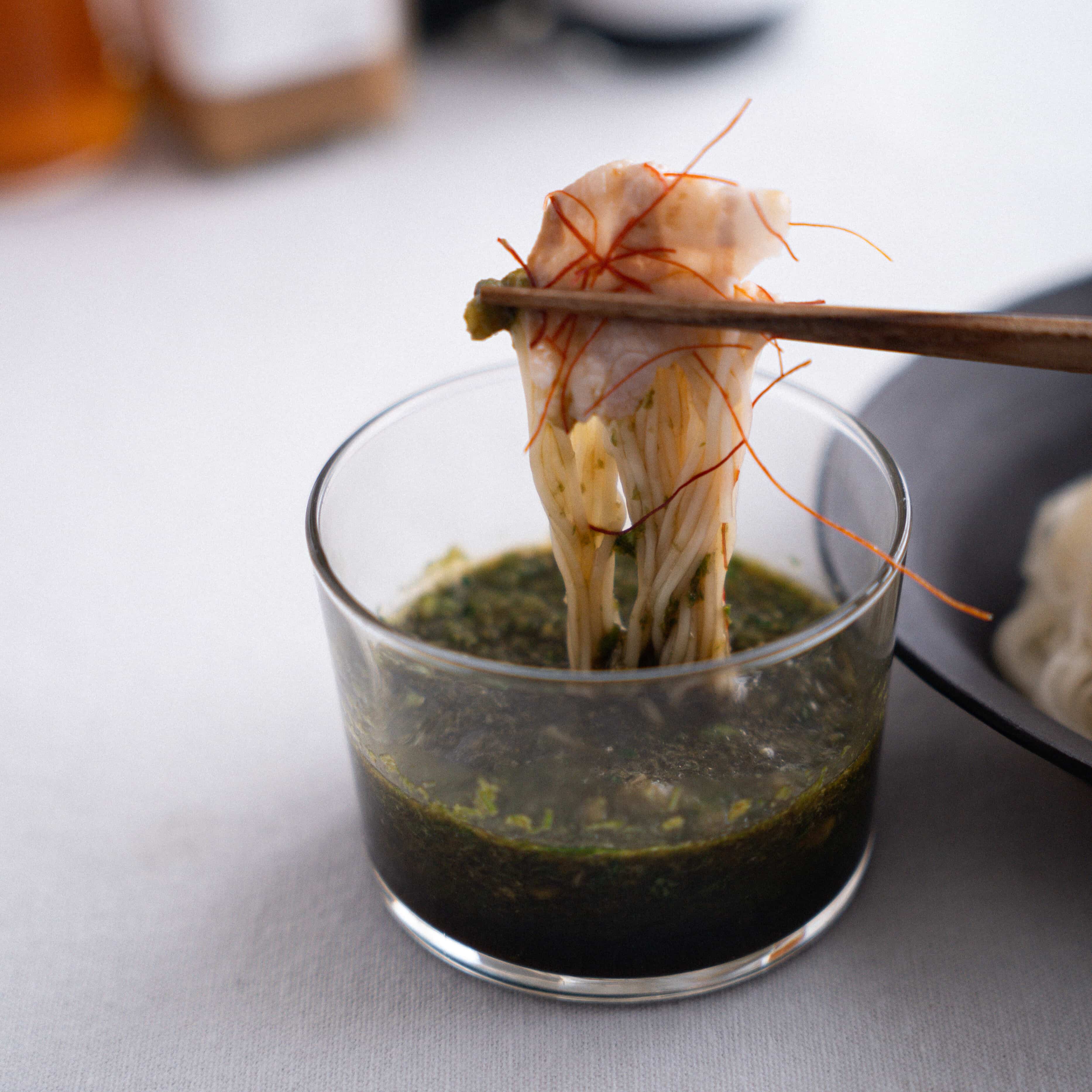 - そうめんをザルに上げ、流水と氷水でしっかり冷やす。