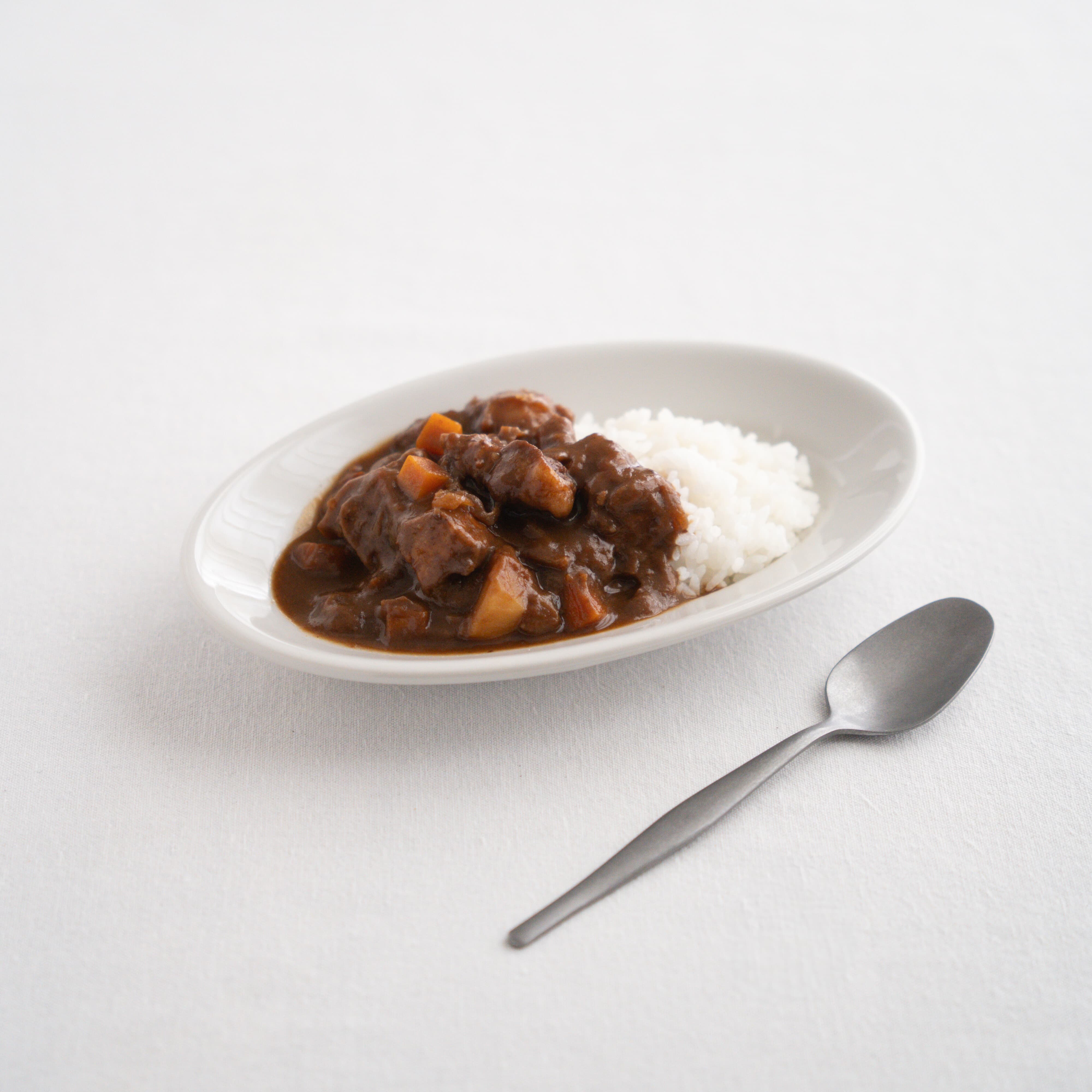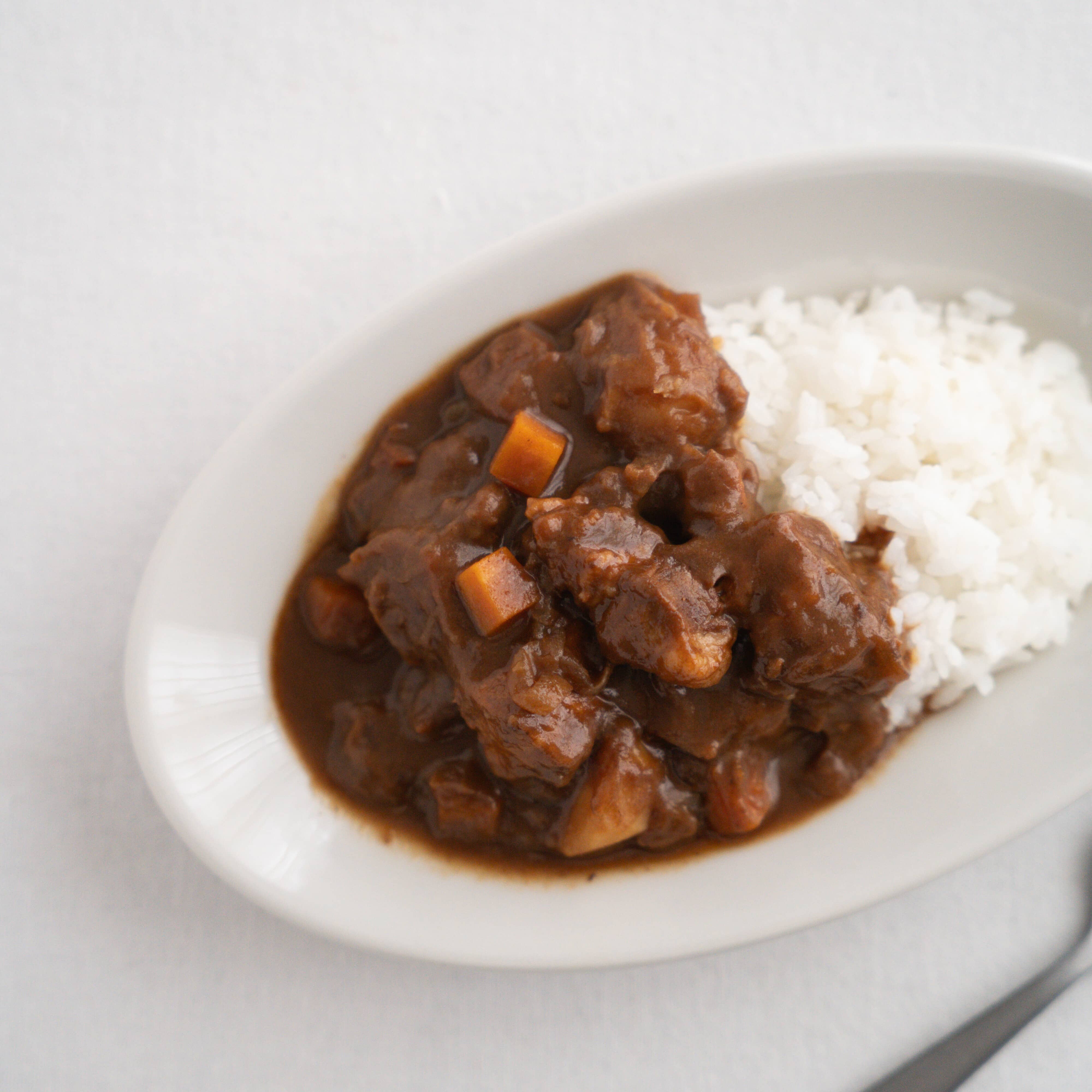 - 皿にごはんとルーを盛り付けて出来上がり。