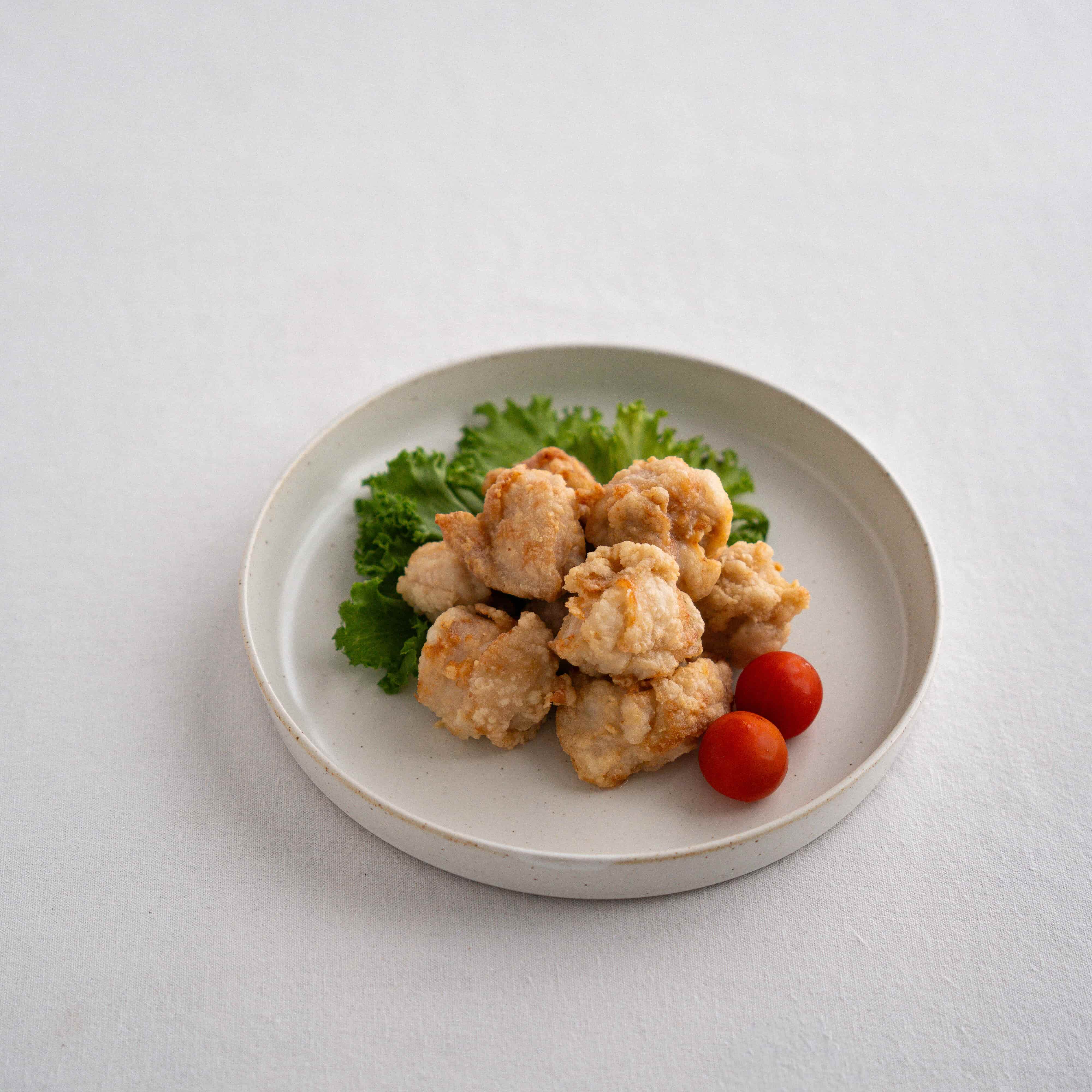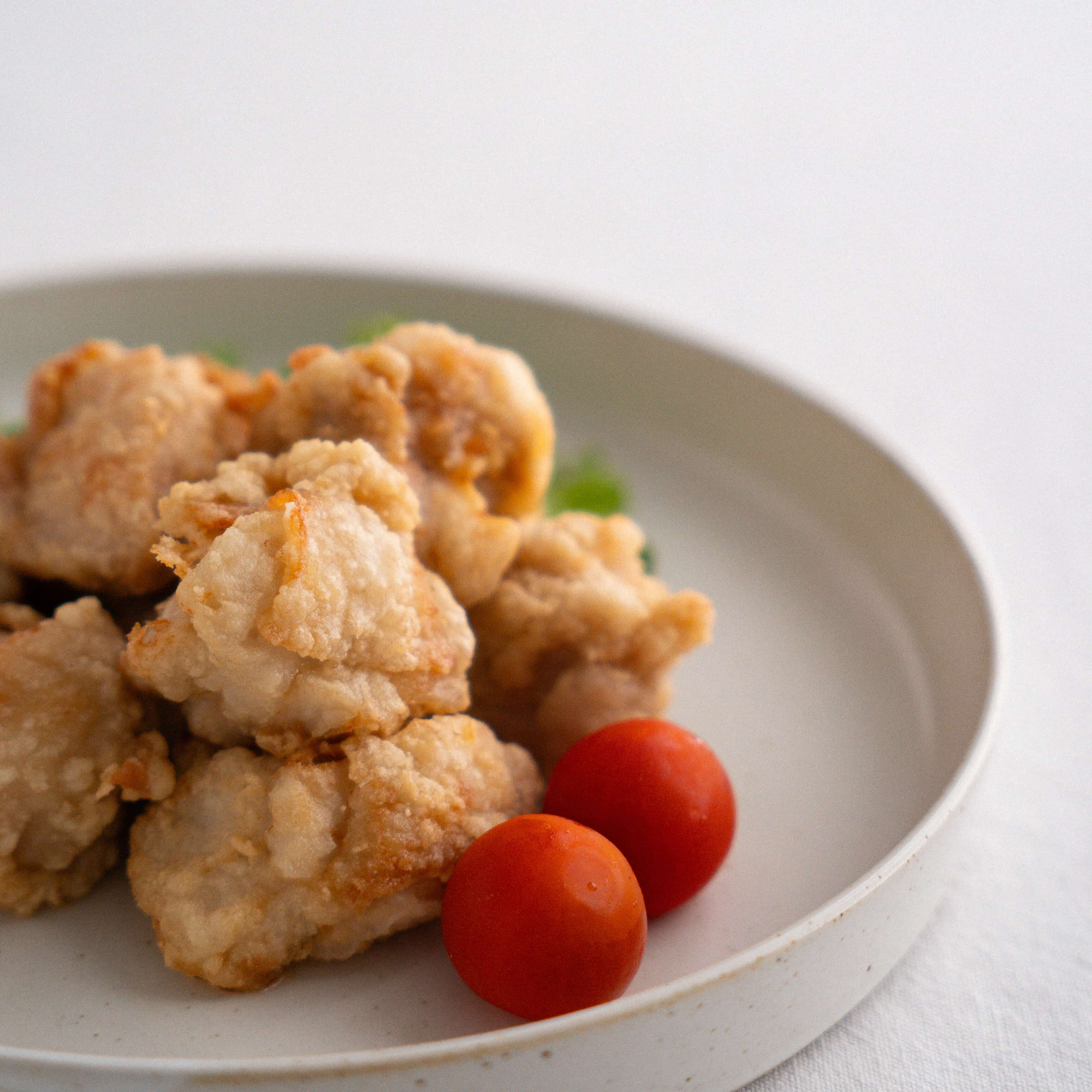- 衣の材料を合わせ、鶏もも肉にまぶす。170℃の油で約2分揚げ、取り出して5分休ませる。180℃でさらに1分半揚げて出来上がり。