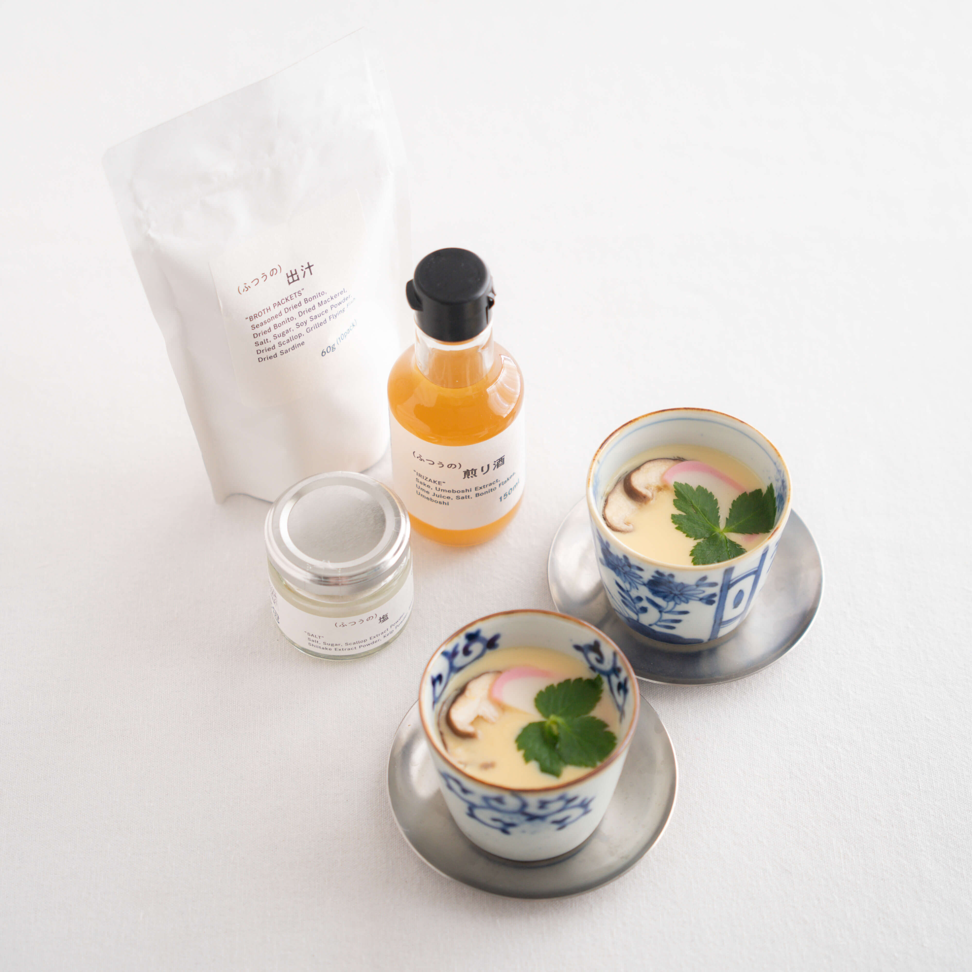 - 卵を溶き、(ふつうの)煎り酒と(ふつうの)塩を加える。さらに①の出汁を加えて混ぜる。