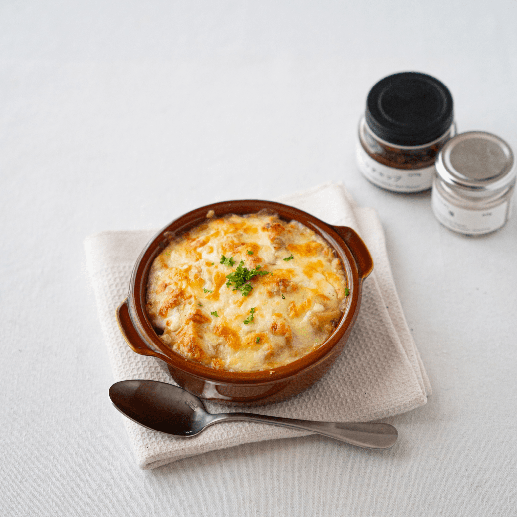 - ※豆乳を牛乳にしても作れます。豆乳にするとグルテンフリー・植物性メニューとして、牛乳にすると通常のクリーミーなグラタンに仕上がります。