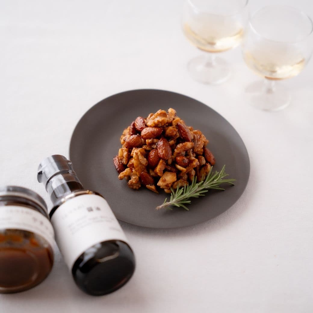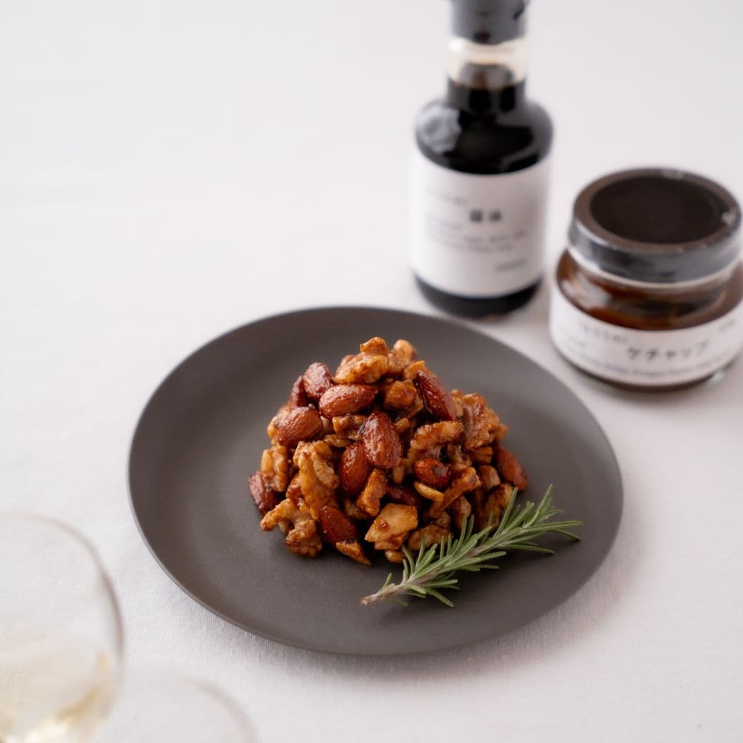 - フライパンにミックスナッツを入れて乾煎りし、香ばしい香りが立ってきたら、合わせた調味料を加えて絡めながら炒める。
